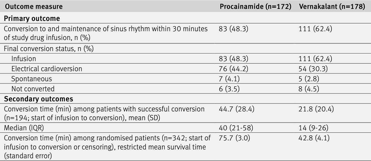 What’s the catch? Safety. Occurrences of cardiogenic shock have occurred with infusions of vernakalant, resulting in narrowed eligibility criteria. However, in RAFF4, procainamide arguably incited a greater number of adverse events, along with a greater number exposed to the risks of procedural sedation, but the trial is too small to fully encompass rare, serious outcomes.