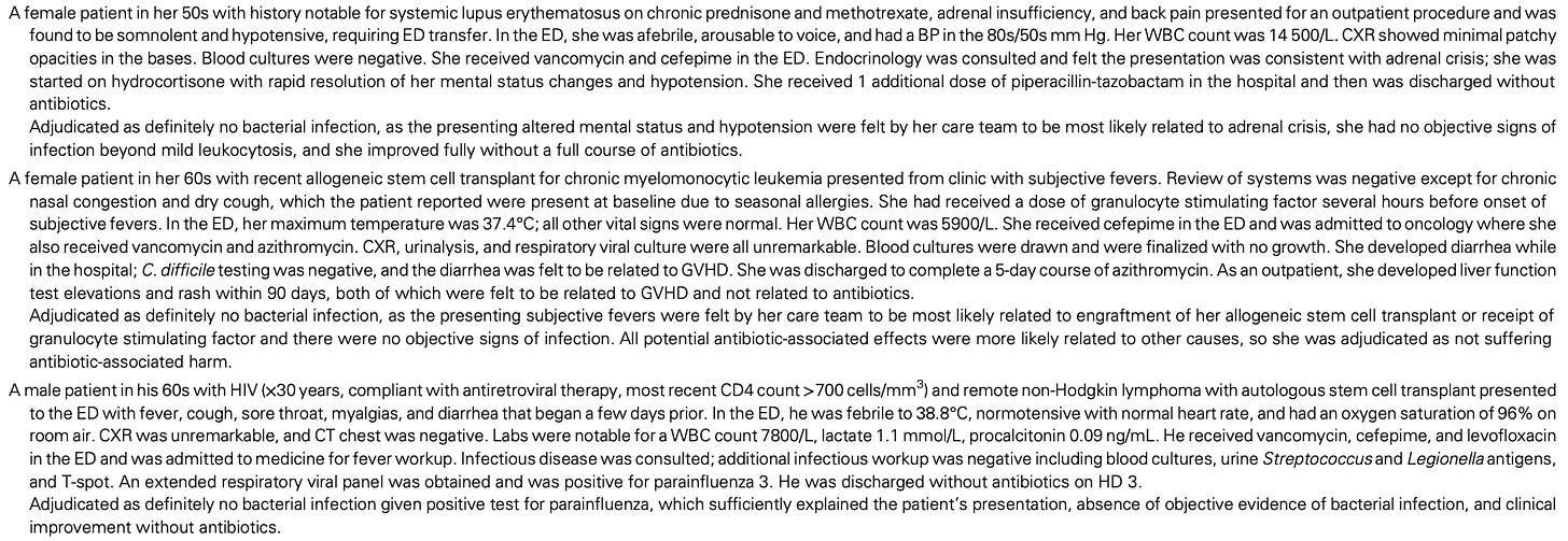 It is fair to say, though, looking at some of their representative cases – the adjudication is a bit harsh. Here are a few of their included examples of “definitely no bacterial infection”: