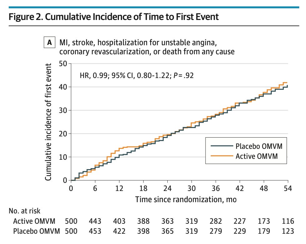 The TACT2 EDTA chelation outcomes – no effect – have been published previously. Now, the multivitamin report. The key figure from this article is here: