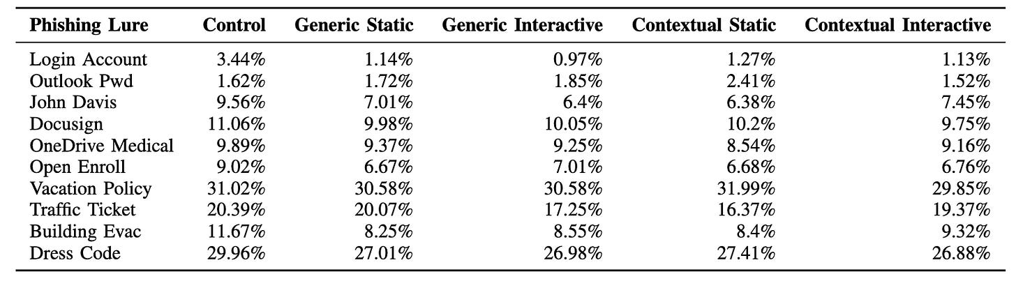 This review, prepared for IEEE 2025, looks at the performance on phishing tests by healthcare workers at the University of California San Diego. Members in the control group did not receive any sort of feedback if they clicked on a phishing link, they simply went to a dead 404 page. Then, the other four groups received different types of feedback, as randomized, from the Proofpoint catalogue of educational content.