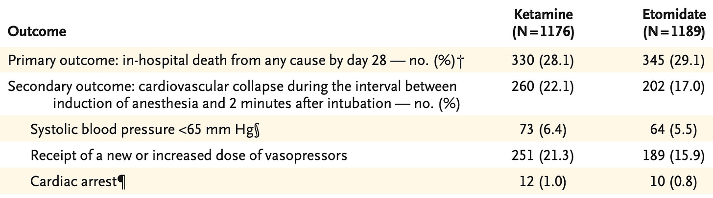 So, ketamine vs. etomidate – whichever agent you feel appropriate for the situation is likely as good a choice as the other.