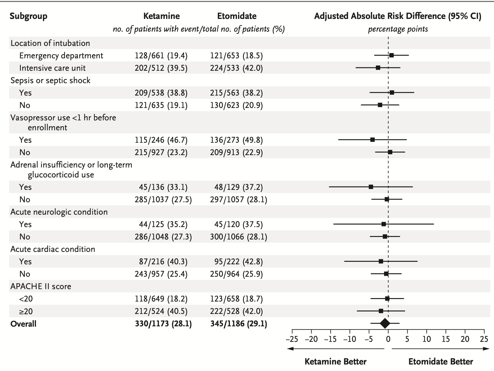 Etomidate suppresses the adrenal axis. Ketamine is a vasodilator and negative inotrope. In critically ill patients undergoing tracheal intubation, which induction agent will win?
