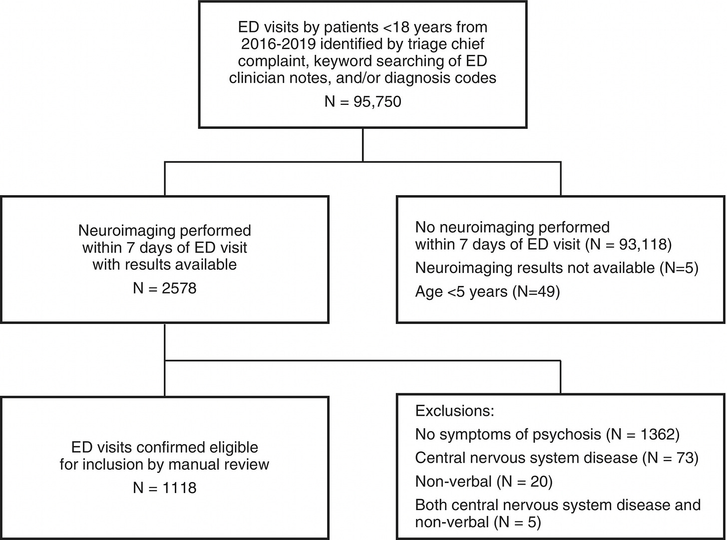 This little study took a retrospective look at children presenting to emergency departments with signs and symptoms of psychosis, and then combed more deeply into the neuroimaging findings for these patients. They identified 1,118 children who underwent 1,325 neuroimaging studies, and lo: