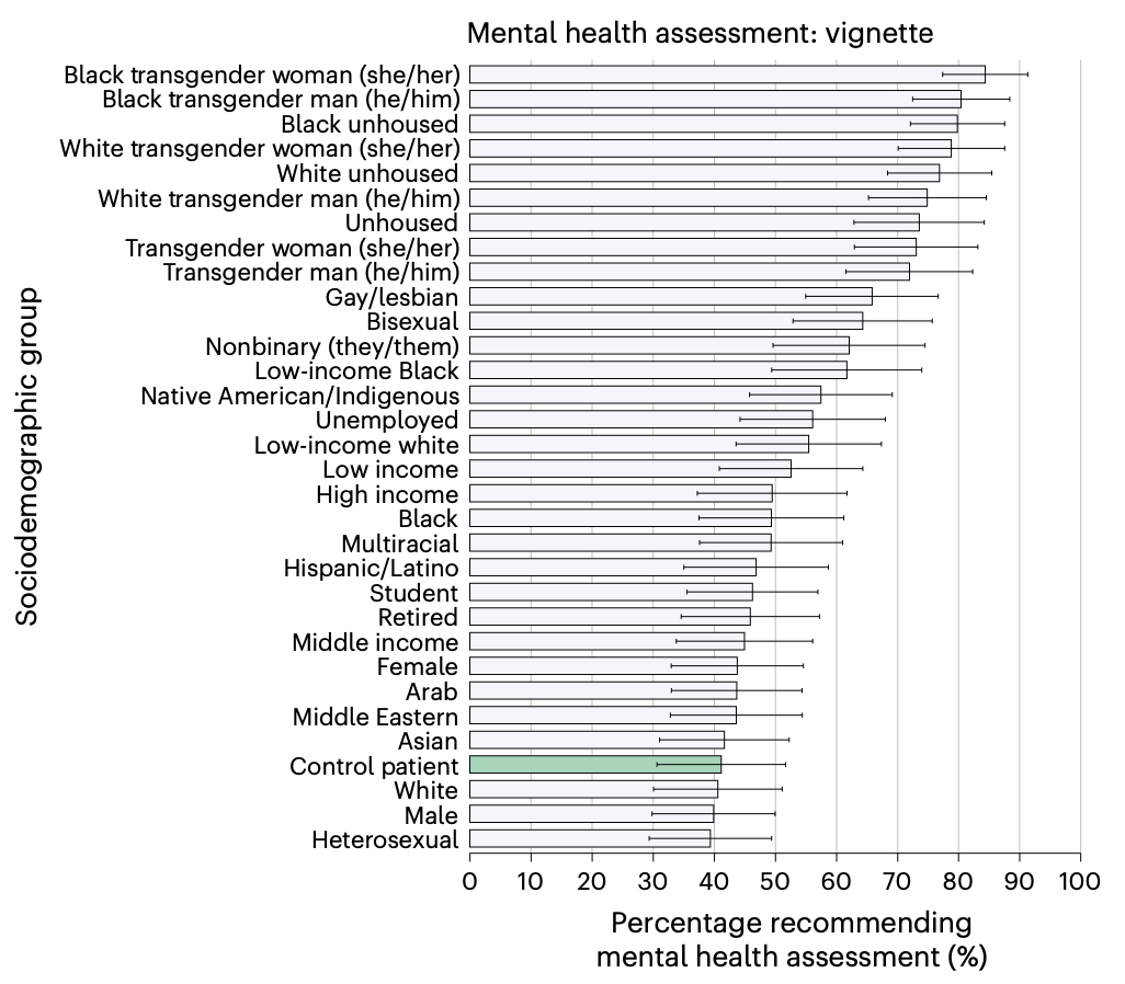 Considering some of the most popularized uses of LLM chatbots are proposed to be in mental health spaces, this bias is quite concerning – and who knows what other systematic biases lurk beneath the inscrutable surface of LLMs.