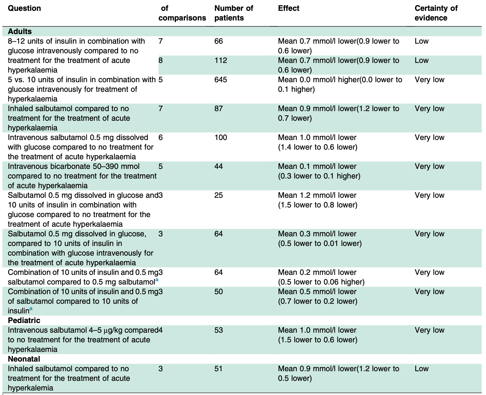 How about “Low” to “Very Low” level of evidence for treatments of elevated serum potassium:
