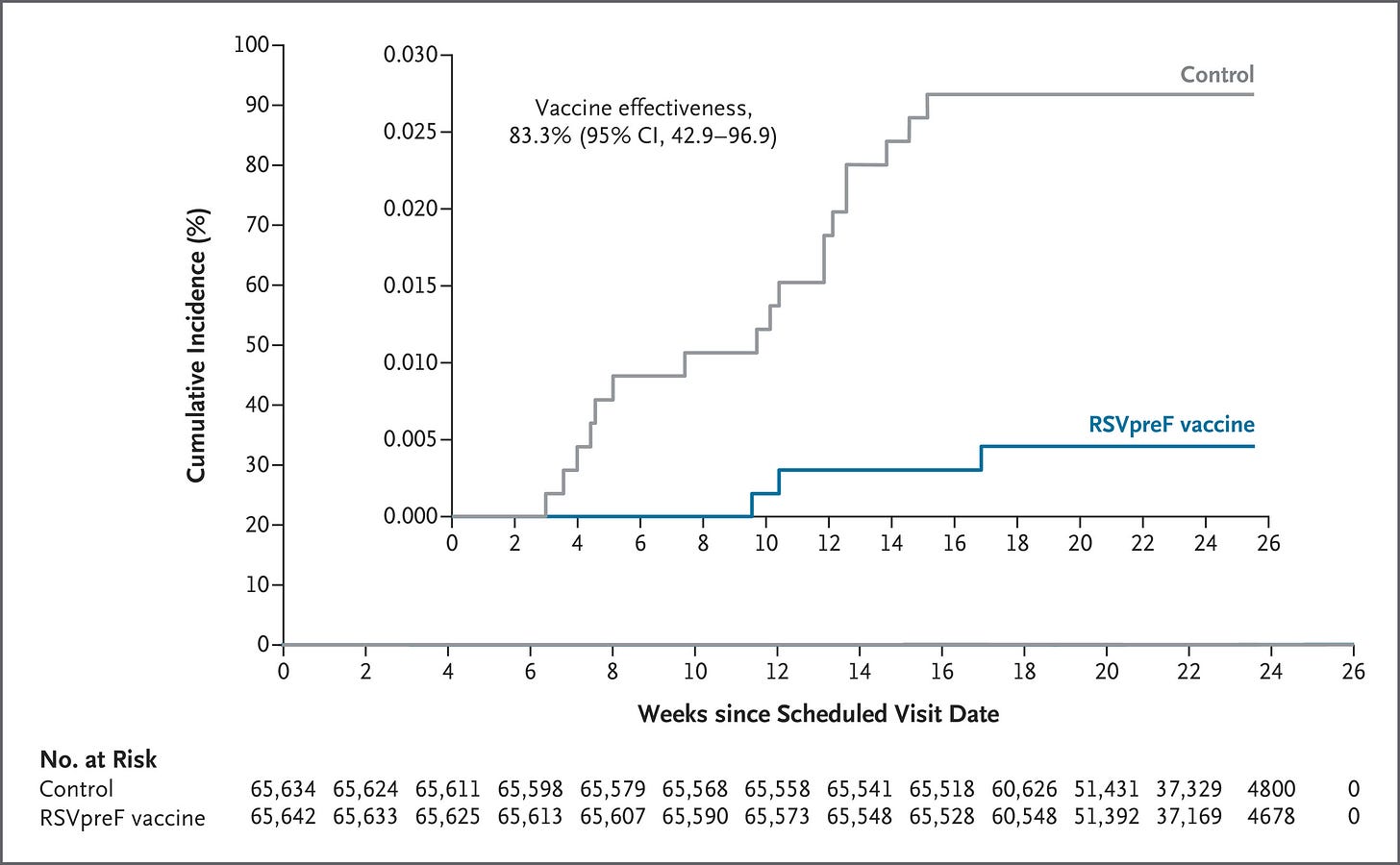 The trick is just how few RSV hospitalization events occurred in the control group – only 18 in 65,000. The RSV vaccine decreased that to 3 in 65,000. Larger absolute differences in all-cause respiratory admission were seen, 335 vs. 284. These are real numbers, but they are not large, impactful numbers. These results will likely be fodder for cost-effectiveness conversations within many health systems. No apparent safety signals were detected.