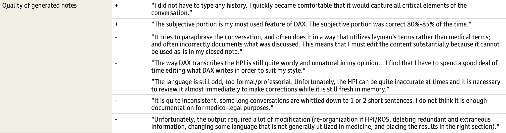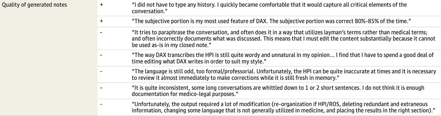 Of this little pilot group – most of whom went into the pilot believing AI scribes were going to be beneficial – the DAX Copilot integrated into Epic did, indeed, make them faster:
