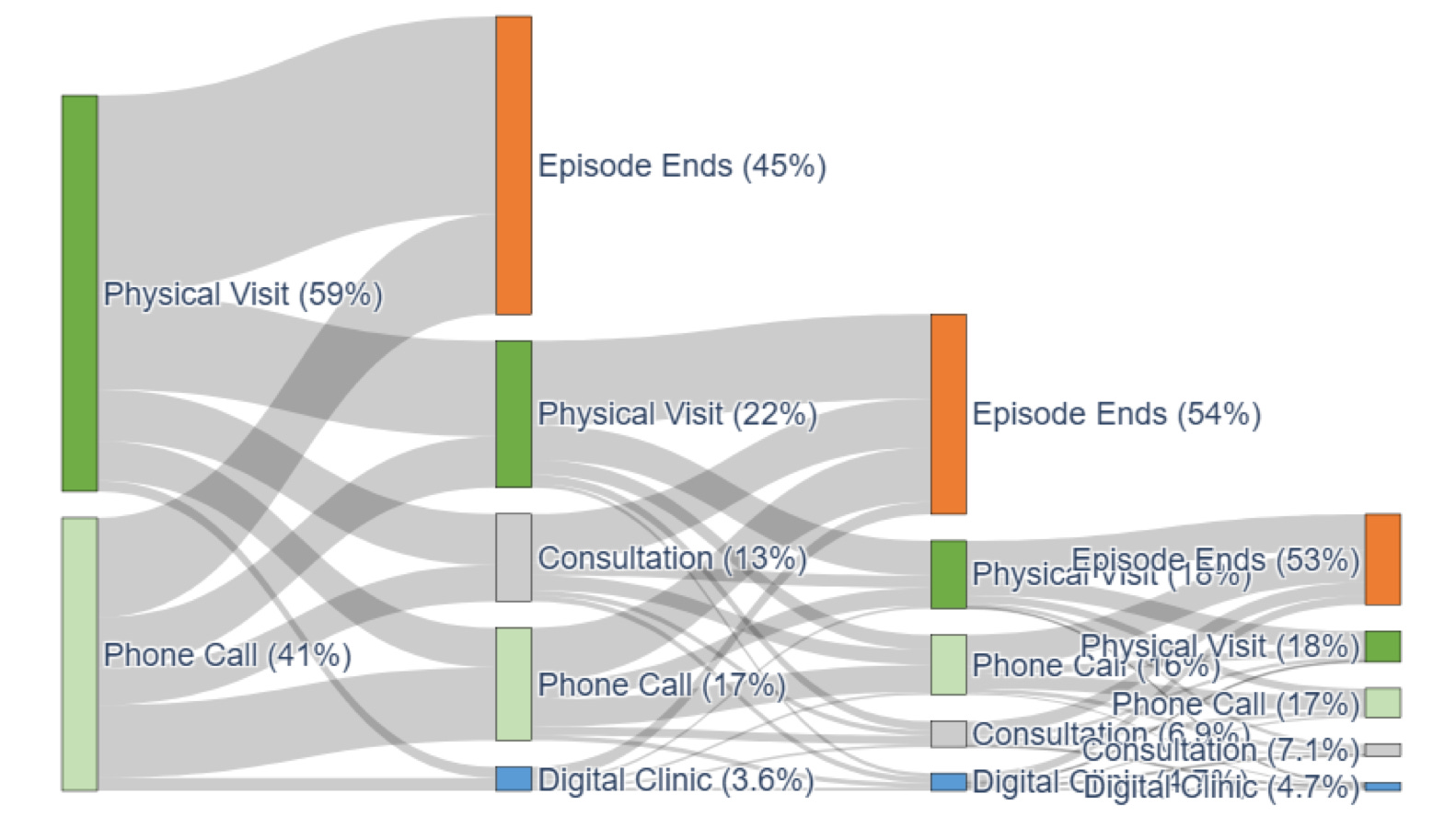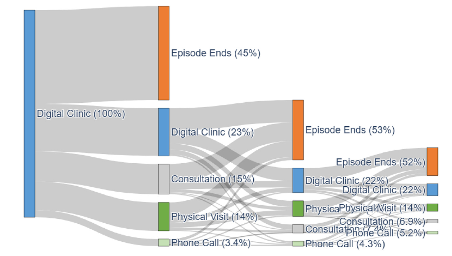 However, in the Supplementary Information, there are a few interesting Sankey diagrams illustrating the healthcare journey of folks who start either by accessing care through the app, or through the traditional in-person or phone-consultation primary care pathway.